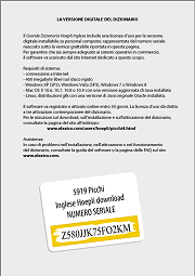 La copia acquistata del Grande Dizionario Inglese contiene una licenza d'uso per l'utilizzo della versione digitale scaricabile e installabile sul vostro computer. In questa pagina troverete tutte le informazioni necessarie.